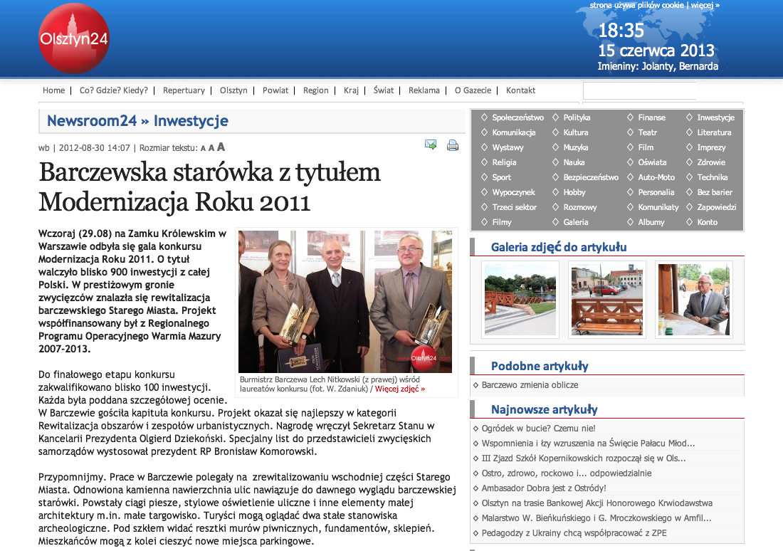 olsztyn24.com Barczewska starówka z tytułem Modernizacja Roku 2011